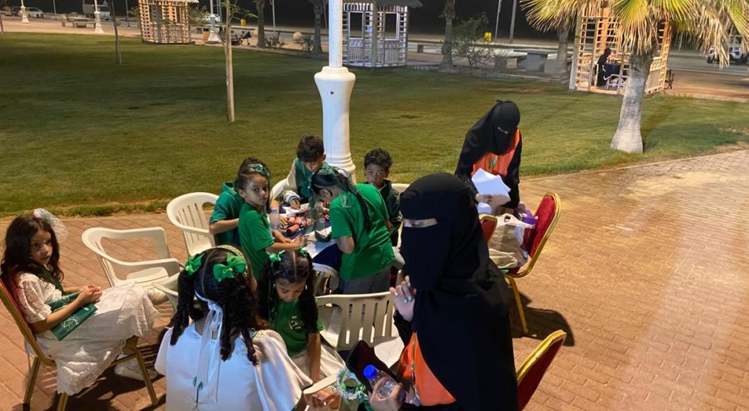 فعالية المرسم الحر للأطفال ضمن (برنامج تأهيل الواعدين) باليوم الوطني السعودي 95 في الواجهة البحرية بالشراكة مع بلدية قوز الجعافرة.